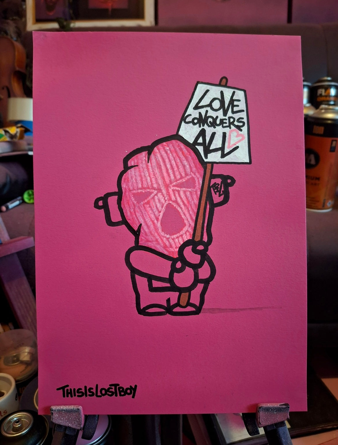 1/1 Spray and acrylic paint and marker pen on 250 gsm paper