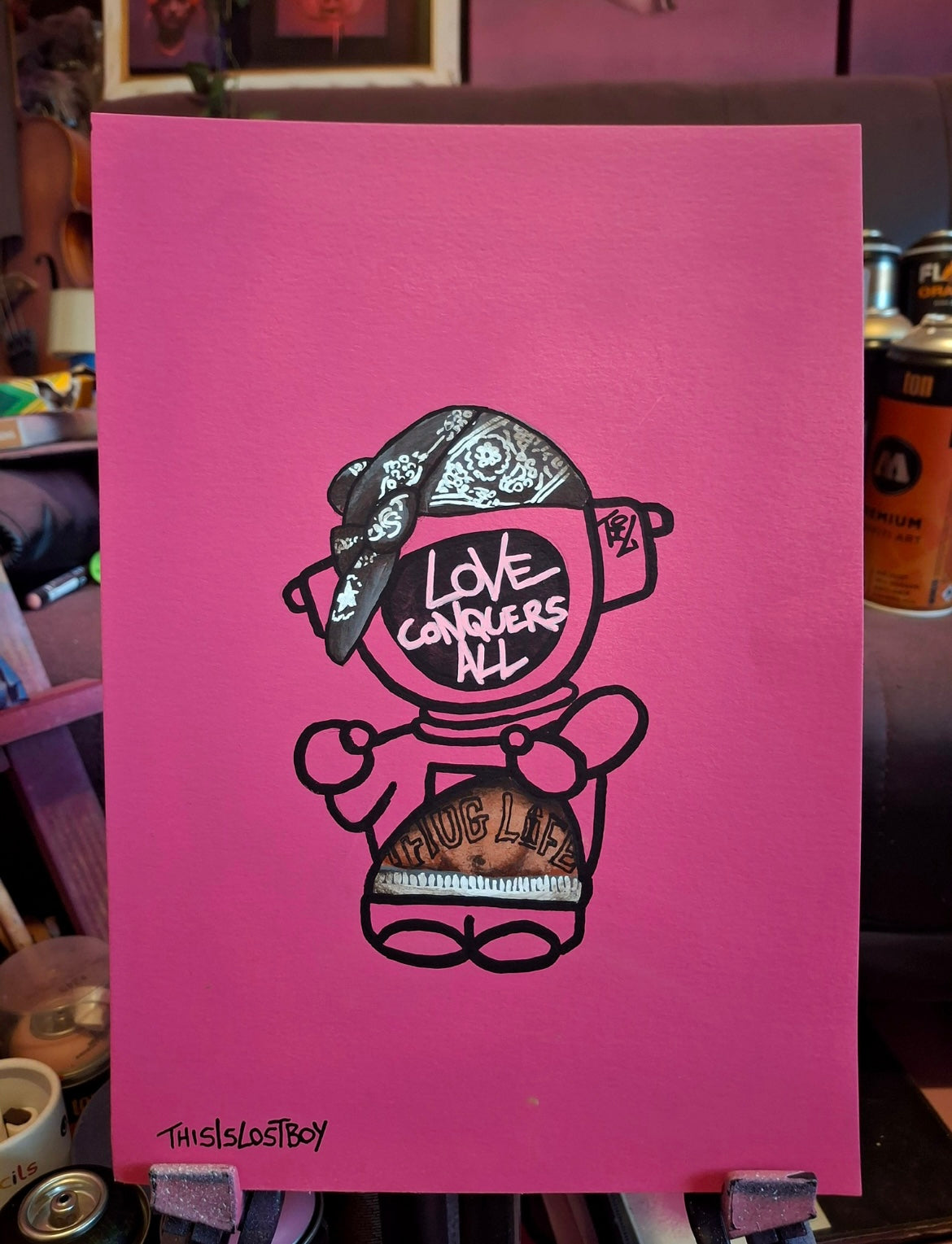 1/1 Spray and acrylic paint and marker pen on 250 gsm paper
