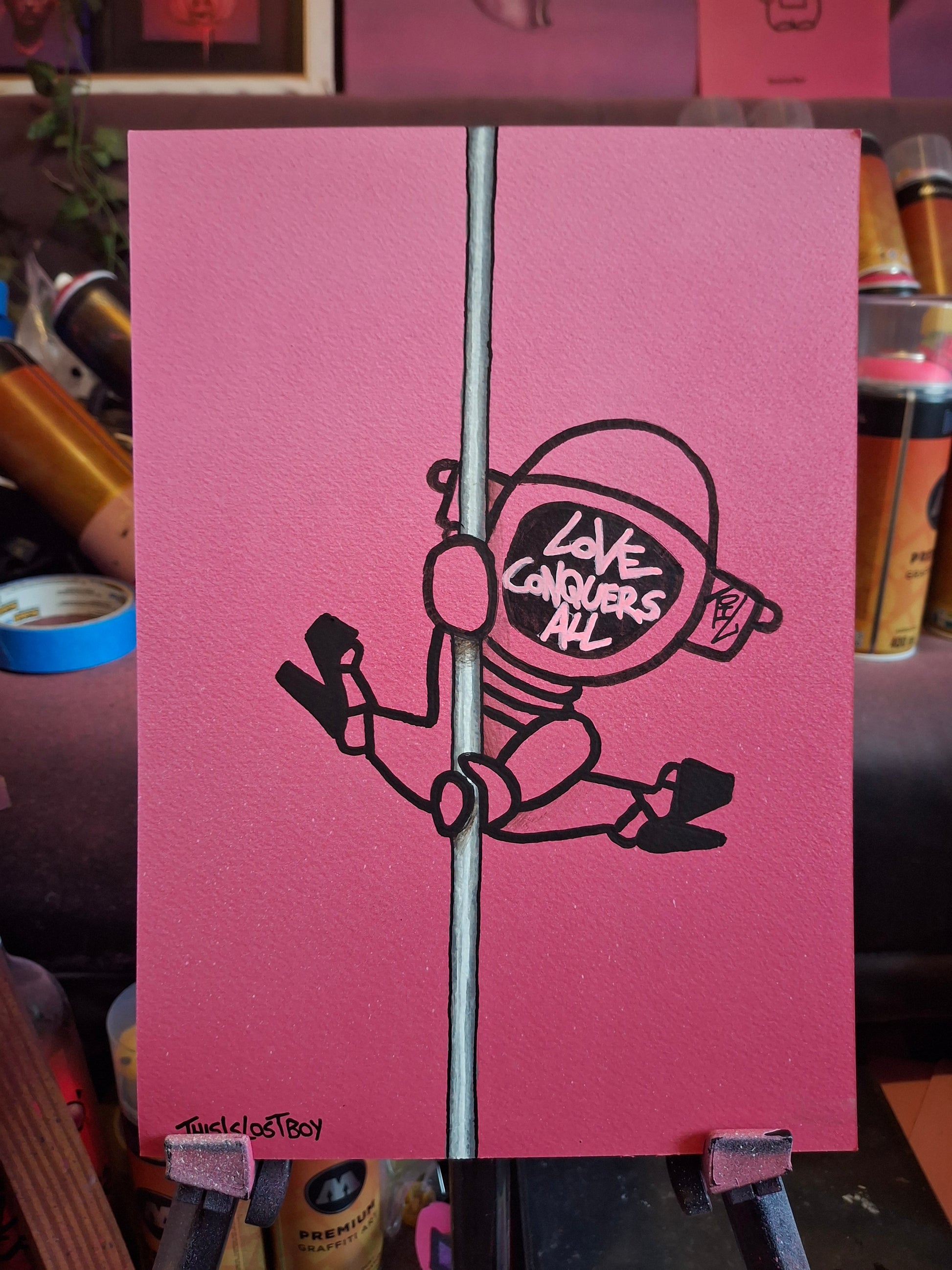 1/1 Spray and acrylic paint and marker pen on 250 gsm paper