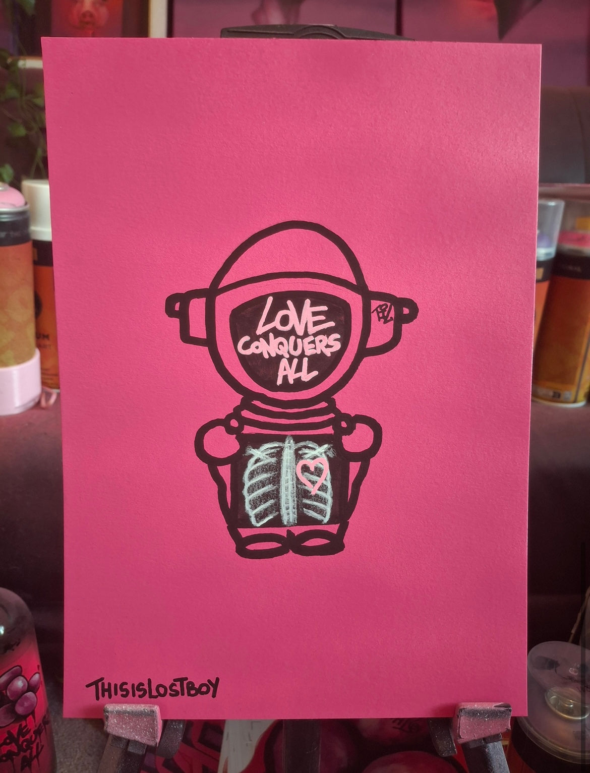 1/1 Spray and acrylic paint and marker pen on 250 gsm paper
