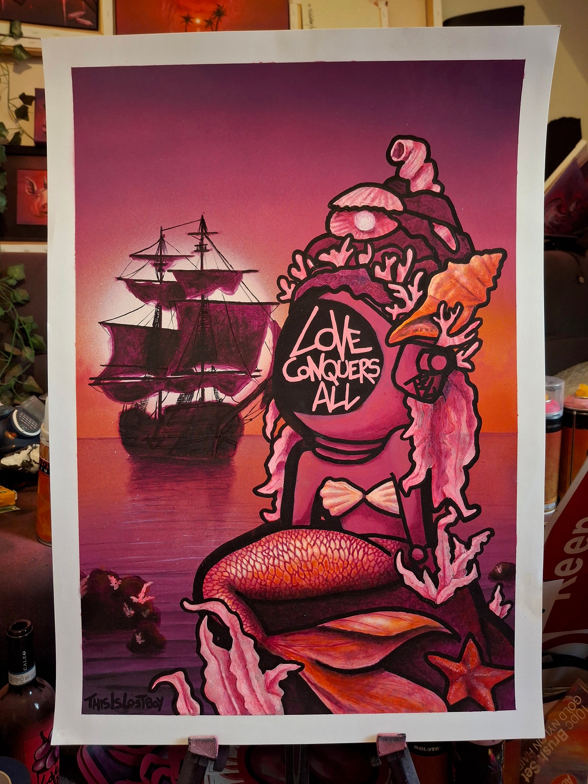 1/1 Spray and acrylic paint and marker pen on 250 gsm paper